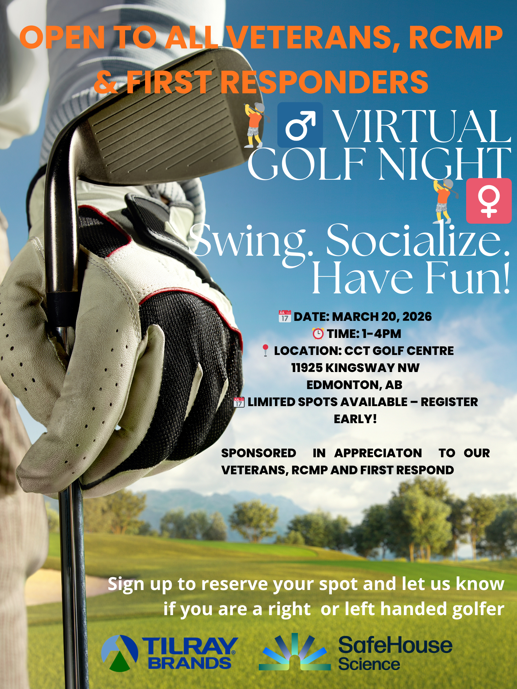 Back to All Events Virtual Golf Friday, March 20, 2026 1:00 PM 4:00 PM CCT Golf Centre 11925 Kingsway Ave NW Edmonton, AB, T5G 0X7 Canada (map) Google Calendar ICS Register here